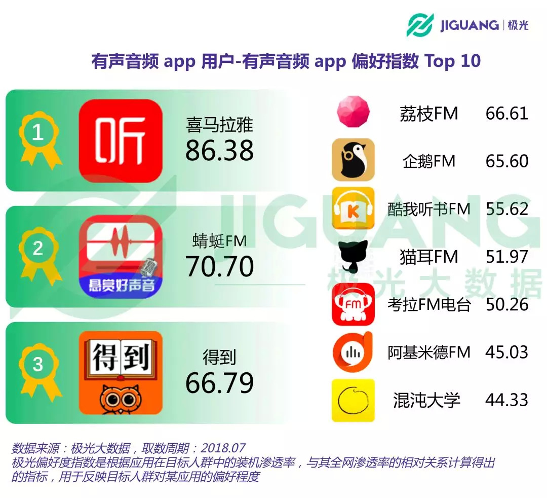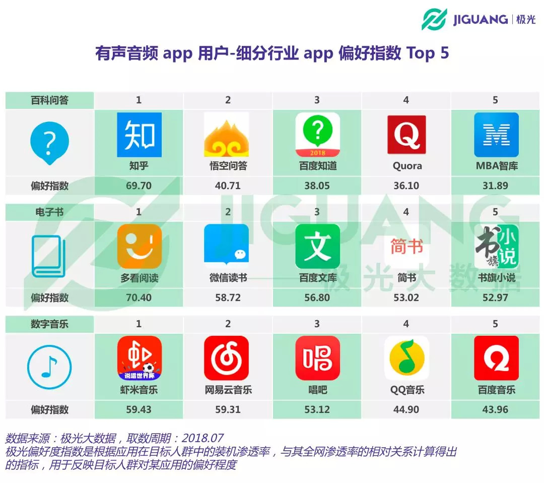 最偏好喜马拉雅、蜻蜓FM和得到,知乎成最受偏好百科问答app