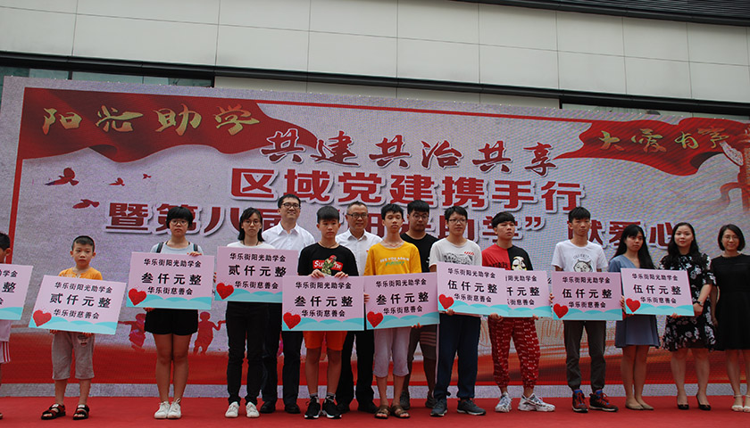 华乐街道党工委紧紧扭住党建引领,推动社区自治共治,结合“幸福社区”建设,坚持问需于民,在1.2平方公里的辖区内陆续创建出商厦党群服务中心、楼宇党建、华乐地区党员先锋队、“乐叔乐婶”志愿服务队、社区治理联盟、老人日托中心(长者饭堂)、阳光助学等品牌项目,让社区居民、驻区单位直接感受到基层党建工作的实效和社区治理水平的提升,让社区单位、党员和群众有实实在在的获得感。阳光助学是华乐街慈善品牌活动,是街道、社区和爱心企业为辖内生活困难但怀有求学梦的孩子搭建的一个爱心平台,以“帮助一个孩子,救助一个家庭”为宗旨,本着助人为乐、育人为本的助学理念,在帮助困难学生圆梦的同时,积极倡导学生回报社会。2011-2017年,共募集助学金162.4万元,有408人次符合条件成功申请资助,发放助学金合计133.4万元,助学活动费8.32万元,结余20.67万元。今年,华乐街党工委积极发挥党建引领作用,继续发动辖内企业、机团单位开展慈善募捐,爱心企业和人士的善心延续、热力不减,共筹得善款约80万元,辖内35名符合条件的学生成功申请资助,将发放助学金11.8万元。