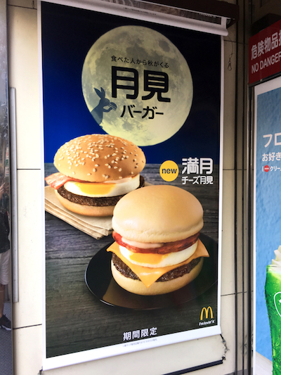 正如在日本肯德基把圣诞炸鸡变成一项商业性质的节日传统一样,在中秋,日本麦当劳也有一个延续多年的商业传统:赏月汉堡。