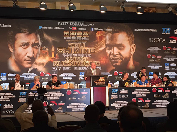 “事实证明我们的眼光也不错。从2013年到2015年,两年三个月,邹市明打了6场比赛,顺利完成了,今天也有机会挑战第一条金腰带。”对于当初的决定,郑捷说。