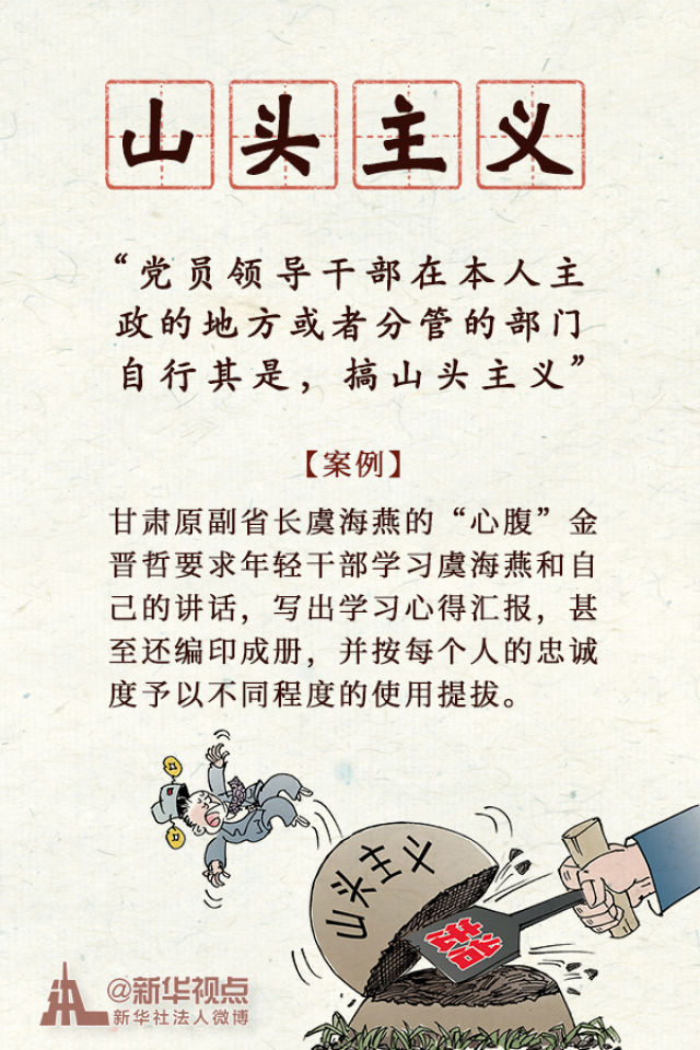 【点评】山头主义,拉帮结派是表象,利益交换是目的,危害党的团结统一是本质,把党内同志关系搞成人身依附关系。新条例明确严惩山头主义,是为了正本清源,维护党的集中统一。