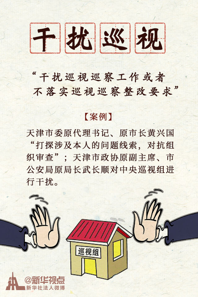 【案例】天津市委原代理书记、原市长黄兴国“打探涉及本人的问题线索,对抗组织审查”;天津市政协原副主席、市公安局原局长武长顺对中央巡视组进行干扰,中央巡视组不仅要提防被监听,还要想方设法确保举报人安全。