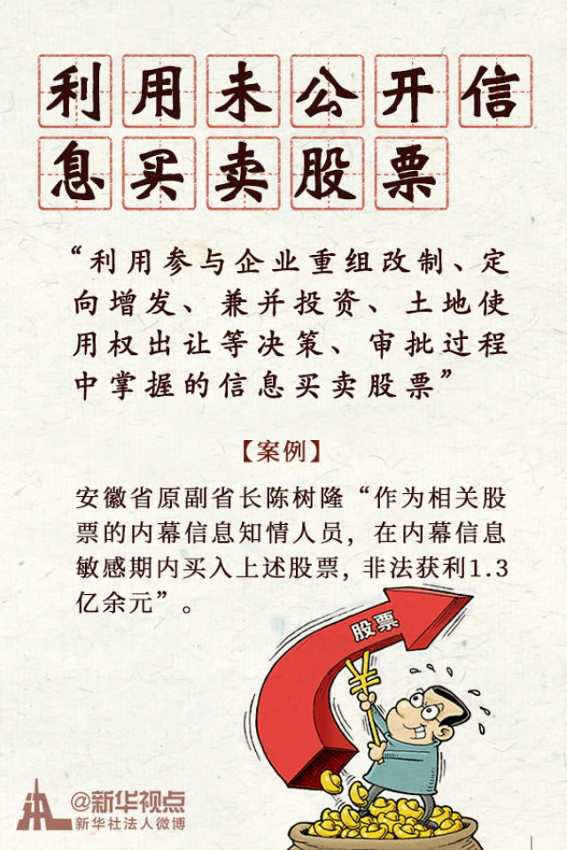 【点评】一些领导干部既想当官,又想发财,在利益诱惑面前丧失原则,搞监守自盗,专业性、行业性腐败往往手法隐蔽。将股票内幕交易纳入处分条例,紧盯金融腐败的重点领域和关键环节,释放出“莫伸手,伸手必被抓”的强烈信号。