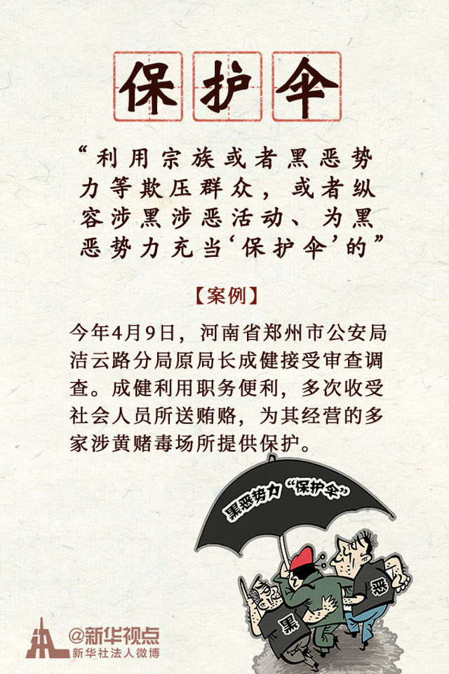 【点评】扫黑除恶既要抓涉黑组织,也要打掉后面的“保护伞”。只有保持高压态势,做到除恶务尽,才能换得朗朗乾坤,不断增强群众幸福感安全感。