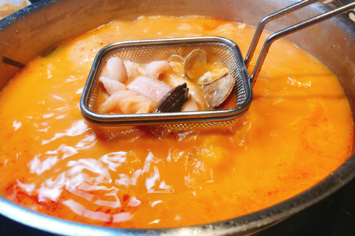 除了不可不试的现象级川味火锅,近期没辣味的海鲜火锅也成为了成都人追捧的热潮。从大龙燚对面的晶融汇西区穿到东区,就能看见店外坐满等着排号的人,这家来自泰国普吉岛的海鲜火锅果然是大热门。