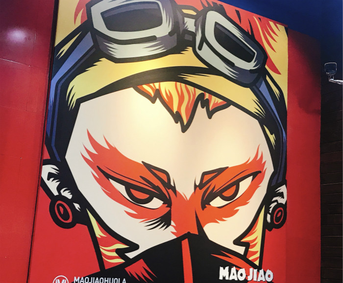 冒椒火辣的第三家直营店就坐落在了IFS和太古里紧隔一条街的东升街上。大红色的主基调给人们视觉上以极大的冲击,墙壁上的悟空大圣涂鸦也颇具成都印象。除了火红的店面设计外,低矮板凳桌也是一个特色,有种小学生们开饭的既视感。
