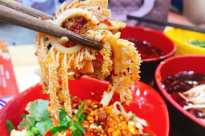 除了网红火锅店,这里当然还有很多有名的小吃,兰婆婆蓬蓬面和王记特色锅魁就不能错过。