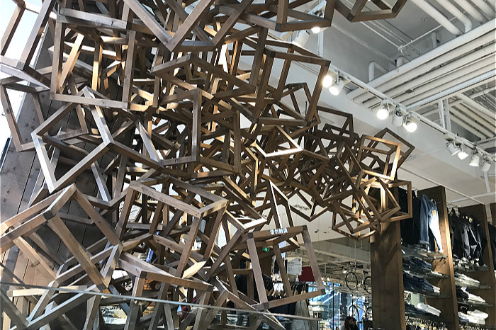 但如果仅仅是这些元素,自然算不上世界旗舰店,这里的特别之一还在于它将一棵树和古董家具搬了进来。一进门吸引目光的并不是玲琅满目的商品展示,而是一棵树,突然间,给人一种放松的舒适感。