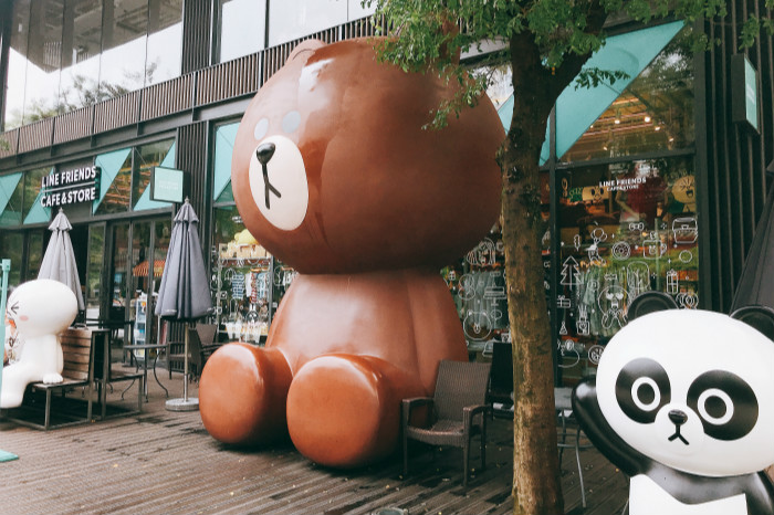 在大慈寺的周围,还有可妮兔、布朗熊和詹姆斯的陪伴,没错,Line Friends Café & Store就在这里。