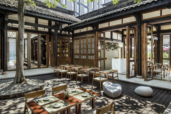 位于太古里商区内的博舍,给人一种中式庭院的大宅子的感觉。