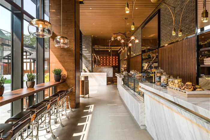 并且,酒店为半开放式的酒店,人们可以尽情地体验其中的咖啡厅、酒吧和茶室等。