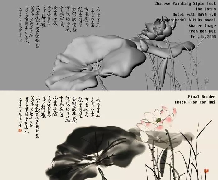 2003年由环球数码的许毅制作,入选2003年SIGGRAPH动画剧场,这部动画《夏》,是首部入选的中国动画,也是国内首部3D水墨动画。
