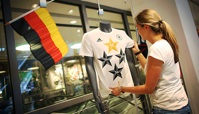 2014年,阿迪达斯宣布德国队用于参加巴西世界杯的主场球衣自2013年11月至2014年12月,已经销售超过300万件。