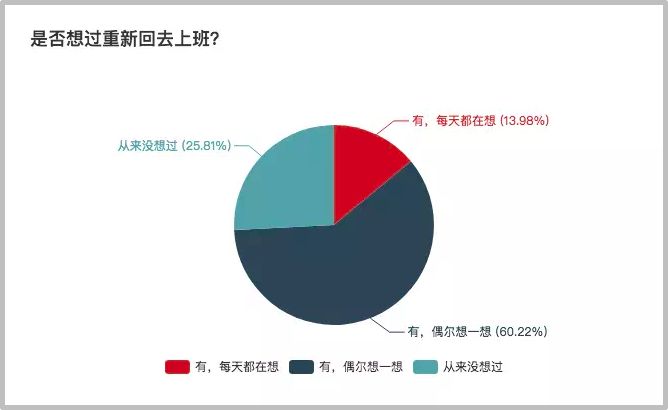 这其中有29%的人虽然赚得更少,但可以维持基本生活开销。这些人虽然赚得更少,却乐于享受现有的生活状态,并不急于重回职场。