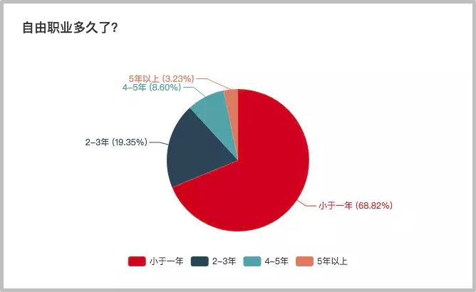 占比第二多的是工作2-3年的自由职业者。基本规律是:自由时间越长,人数越少。
