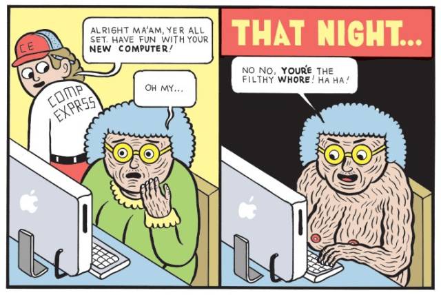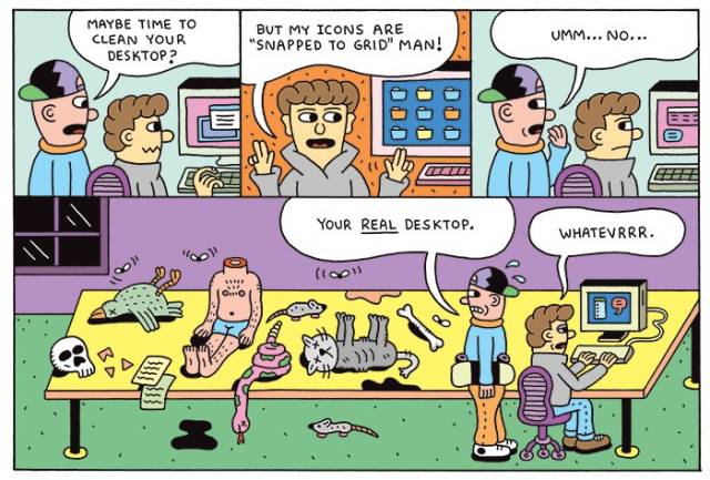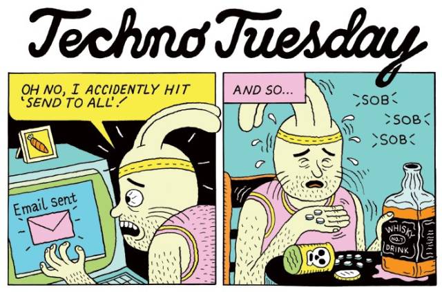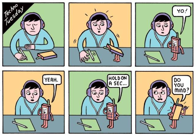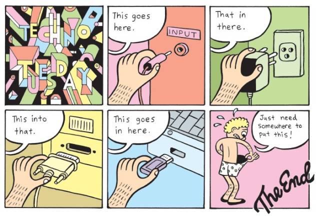 不过相比那些封面插画,我更喜欢Andy Rementer的Techno Tuesday每周漫画,不仅有带设计感的图画和画风,而且里面的内容还超有梗。