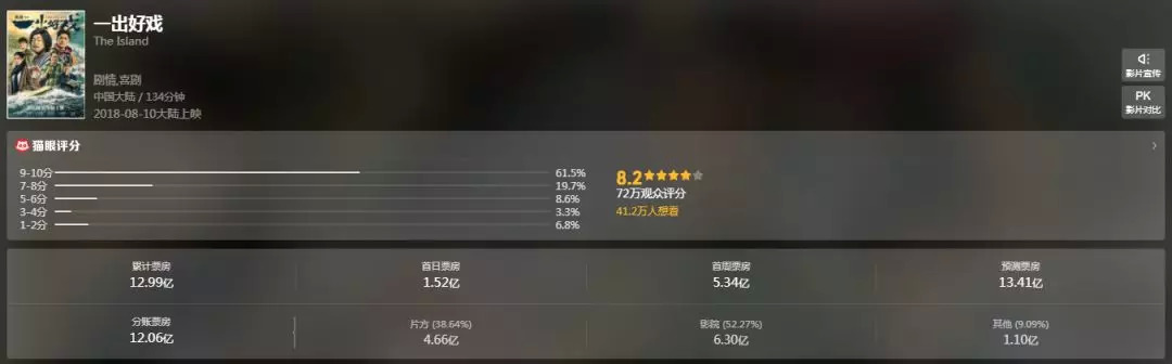 高口碑的电影无疑有更强大的长尾效应,使得影片在中后期能在保证基本盘之下强势抗跌,甚至出现逆增长,最终完成逆袭,春节档的《红海行动》对《唐人街探案2》,《一出好戏》对《爱情公寓》真是如此。