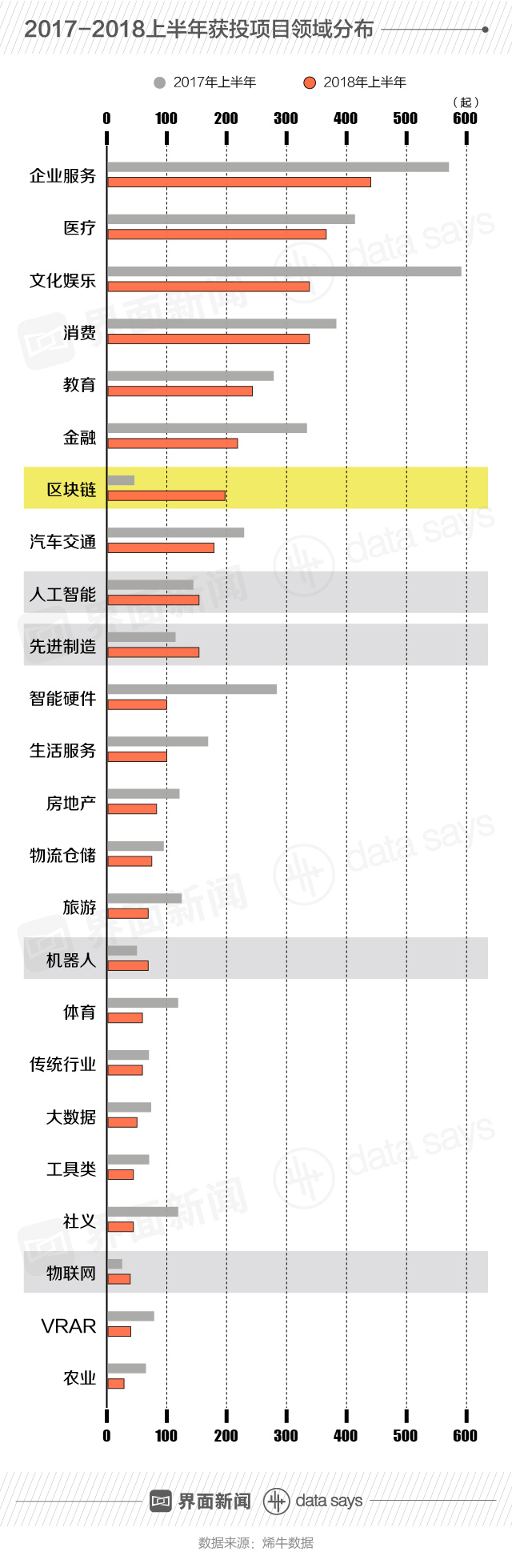 烯牛数据显示,2018年上半年国内共有199个区块链项目获投,较去年同期激增363%,成为投资新宠。