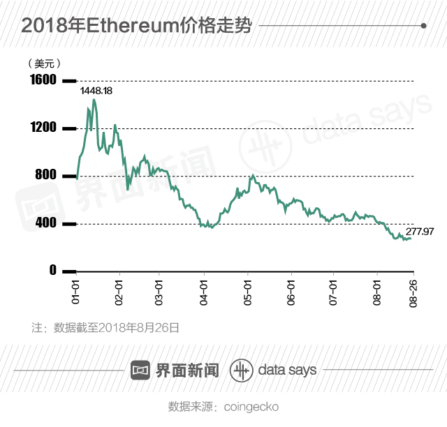 根据coingecko显示,目前币圈市值最高Bitcoin和Ethereum的日子也不好过,2018年8月26日的价格仅分别为年初的36.7%和19.2%。