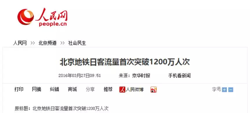 实际上北京地铁1天客流量就超过春运期间全国火车站总和(759万)。北京年运量36.6亿,一年365天,假设一天1000万人,一年运量正好是是36.5亿人次。每天在地下奔波的步履匆匆的年轻人,只不过是1000万分之一。