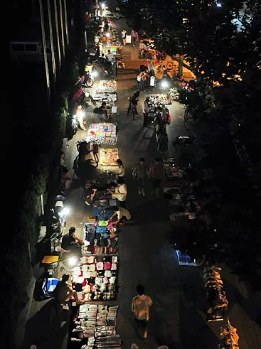 有一次我送她回去,到天宫院。大家如潮水般涌出,我惊讶地发现在地铁出口到地面的天桥上,铺满了小摊子,一个小台灯,照亮出售的商品。烤冷面和煎饼摊前围了一大堆人,那些小贩也操着各地的口音。