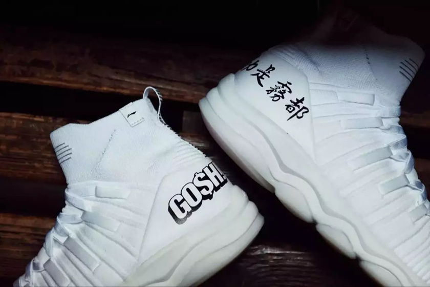 就在去年,李宁还找到了Gosh,推出了一款印有“勒是雾都”的合作款球鞋。