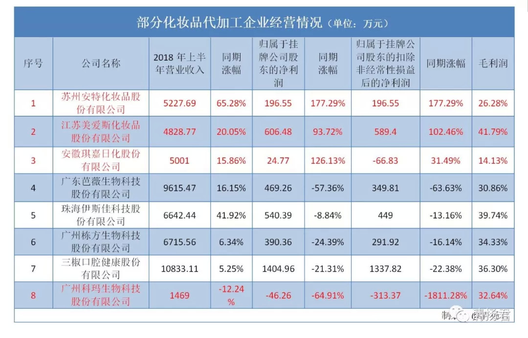 通过数据对比不难发现,2018年上半年营业收入,同比增长的企业有7家,个位数增长的有2家,增长超过40%的有2家;但是净利润和营收双双递增的只有三家,代加工企业情况不容乐观。