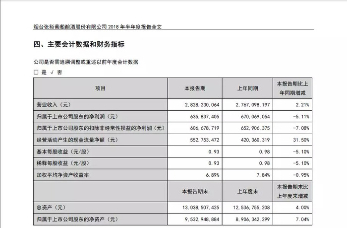 8月29日晚间,张裕A(000869.SZ)发布了2018年半年度报告,实现营业收入约为28.28亿元,微增2%左右;