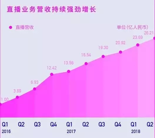 值得注意的是,陌陌2018年第二季度拿到31.52亿的收入,有83.15%的比例来自于直播。资料显示,直播服务在2018年第二季度产生营收26.21亿元人民币(约4.11亿美元),与去年同期的16.54亿元人民币(约2.594亿美元)相比增长了58%。