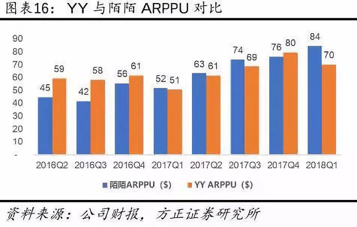 尽管不愿意承认自己是一家直播公司,但陌陌自2015年切入直播赛道,2016年开始引入主播公会。就以直播付费用户单季平均收入来说,陌陌的用户平均收入高于YY与虎牙。包括唐岩本人也是陌陌直播里的知名主播,迄今收到几十万的打赏。