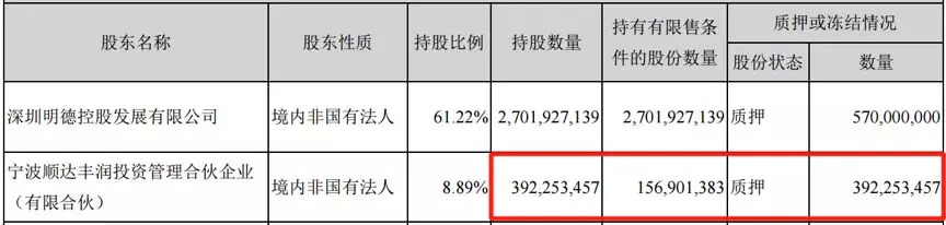 2018年6月8日,顺达丰润6620.36万股股份到期解除质押,一个星期之后顺达丰润即通过大宗交易及集合竞价方式合计减持约1069.45股,减持参考市值约4.8亿元。