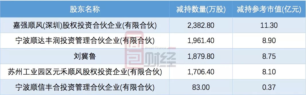 上述减持股东中,顺达丰润的减持值得关注。顺达丰润成立于顺丰借壳上市前夕,股东主要系顺丰控股高管。