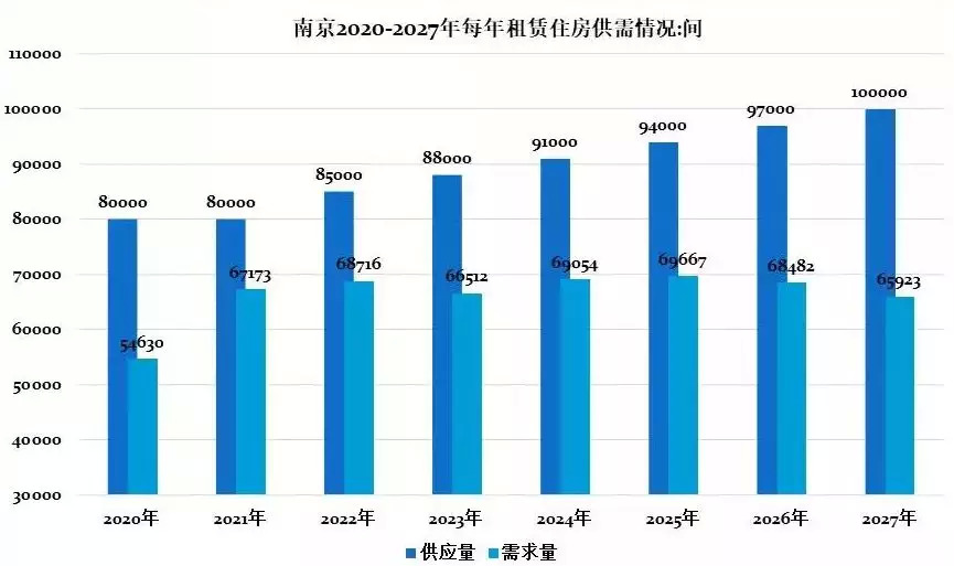 今年早些时候业内研究机构披露的一项调查则显示,虽然南京有约153万外来常住人口,租赁市场需求规模巨大,但未来的住房租赁市场仍可能出现供大于求。根据机构预测,到2020年南京租赁住房供应量可达8万间、需求量54630间,2021年供应量8万间、需求量67173间,到2027年供应量预计达10万间、需求量65923间。总体来看,2020年至2027年,租赁住房供应总量将达71.5万间,年均供应量约8.9万间;同期租赁住房需求总量为530157间,年均需求量约6.6万间,租赁房源供应将稳步上升,供大于求是大势所趋,市场竞争还有可能白热化。
