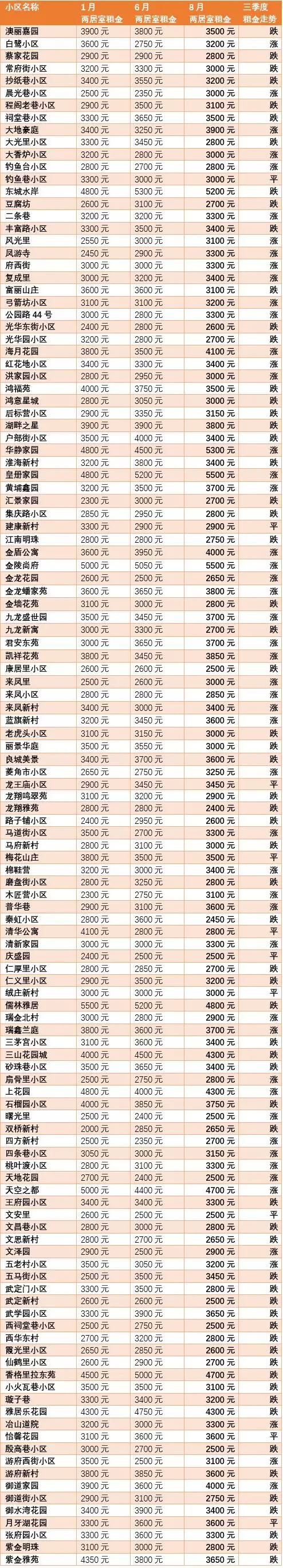 8月份全市800家小区两居室租金报价一览鼓楼区