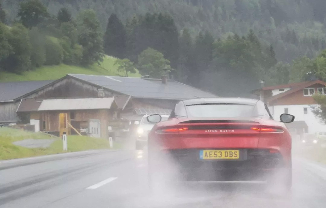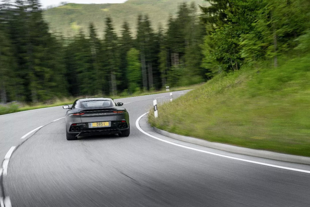 除了3挡几乎搞定所有弯道之外,DBS整个动态的平衡性也让人满意,晚宴时我一旁的设计总监Miles先生说:“温柔对待DBS的油门非常重要,只要柔顺地驾驭DBS,它会跑出让人惊讶的速度。”而跟DB11标配的普利司通S007相比,DBS搭载的Pirelli P-Zero Corsa在干地的黏性优秀许多,在短暂雨停后几个路面较干的路段,激烈过弯时轮胎隐约哀号了几声,除非脚下的油门不够细腻,多数时间轮胎都紧紧咬着地面。过去我们开FR性能车时总是以破坏重心平衡扭摆屁股为乐,经验不够的人,随时加深油门就能吓出你一身冷汗,但DBS在干地时并不那么容易逾越抓地力的极限,只要你不杀红眼,车架与底盘总是能够很从容地应付。
