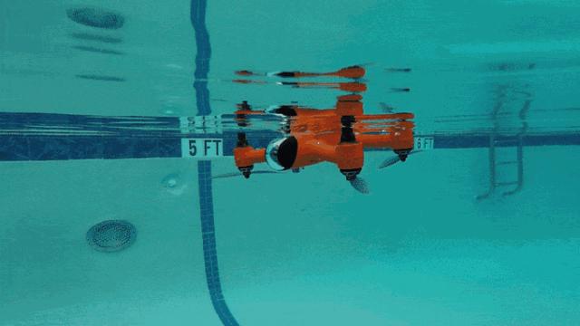 SwellPro可以在水下自由运行,如果激活朝下的螺旋桨,SwellPro也可以短暂地进入海底深处,反过来,螺旋桨向上的时候,SwellPro就可以直接从水面飞上天空。