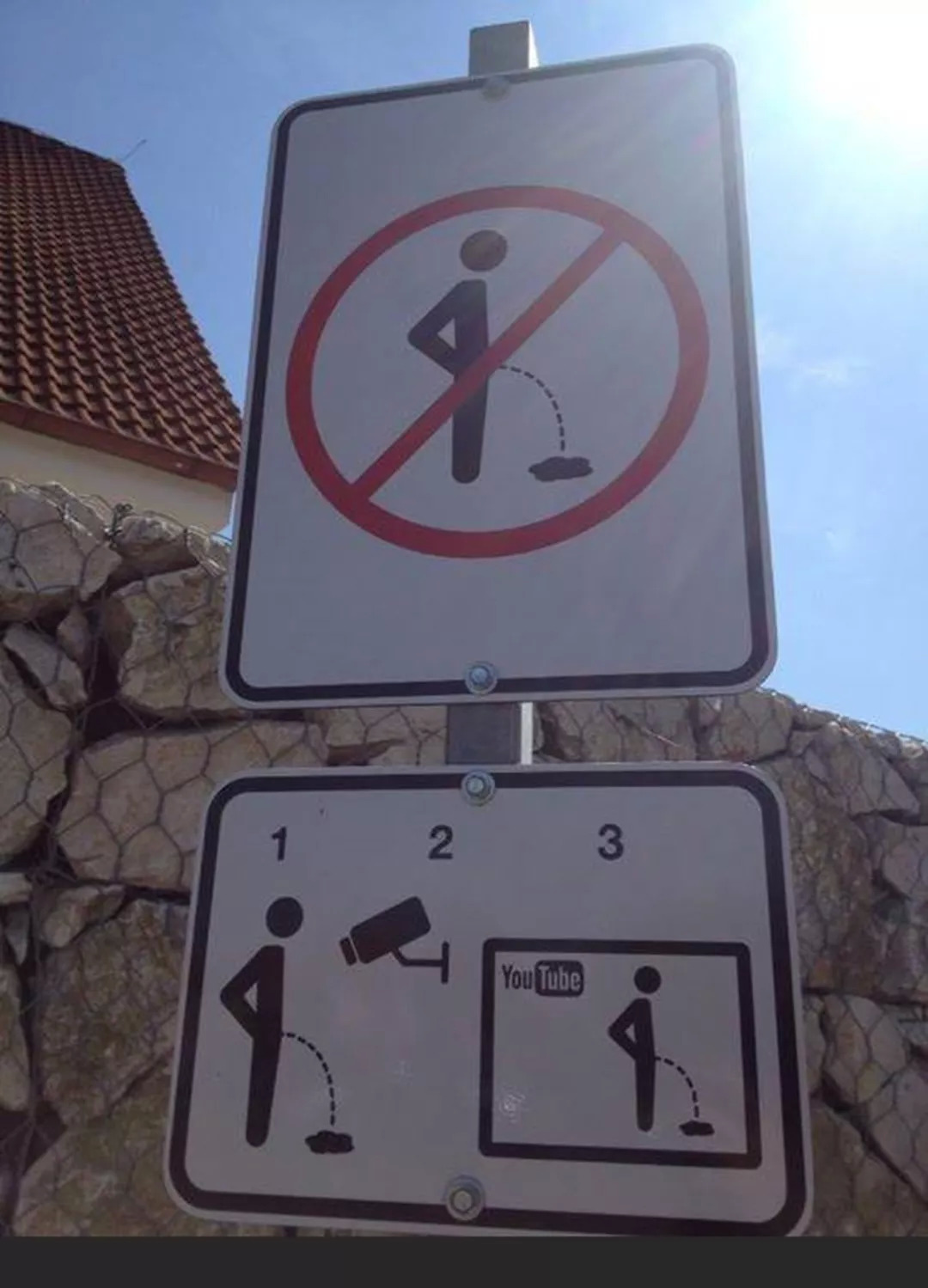 还是这个广告牌有效一些:你丫再敢随地大小便,就让所有人都来围观你的丁丁