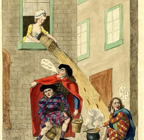 在中世纪的欧洲,大多数人的家里没有排污系统,所以大家都习惯把屎尿直接泼在大街上。