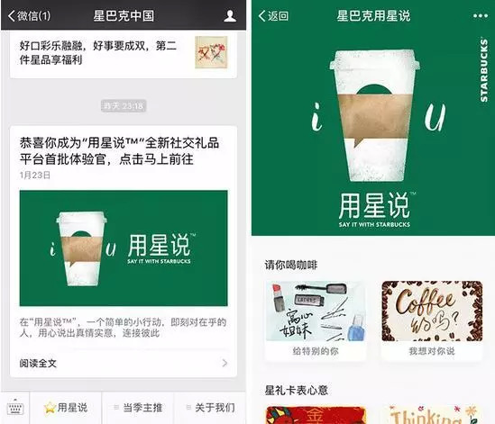 2017年2月,星巴克宣布与腾讯微信联袂打造“用星说”正式推出,上线仅三个月,便获得几百万用户。