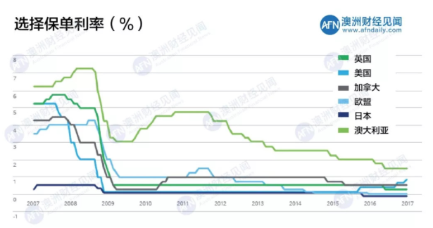 根据上图我们可以得知,澳大利亚的利率从大约10年前,2008年就开始持续走低,现在的利率1.5%,处于历史最低。或在这两年会出现新的变化。