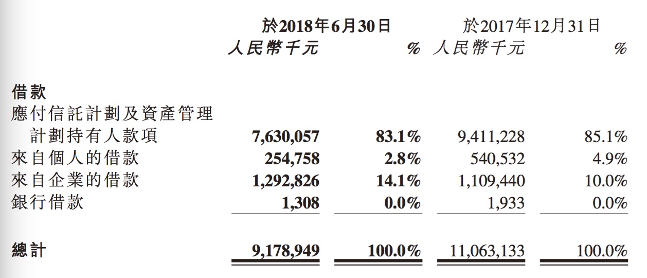 在资金端,中报显示,2018年上半年,维信金科约有83%的资金来源于信托计划,同比增加2%;14.1%贷款来源于企业借款,同比增加4%。