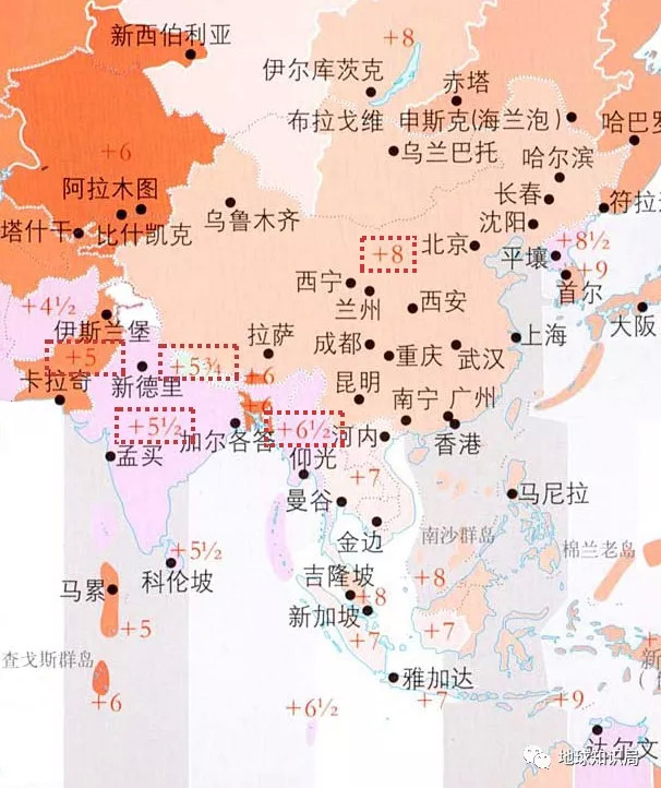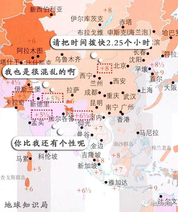 好不容易赶走了英国人的印度人当然很珍视自己来之不易的独立,也急于跟英国人划清界限,就综合了东西两部分的意见,大致上按照首都新德里的位置设了这个东5.5区。隔壁同样刚刚从英国人控制之下独立的缅甸则有样学样,选了一个东6.5区。实际上以缅甸的国土位置来看,直接归于东六区也没有什么问题。