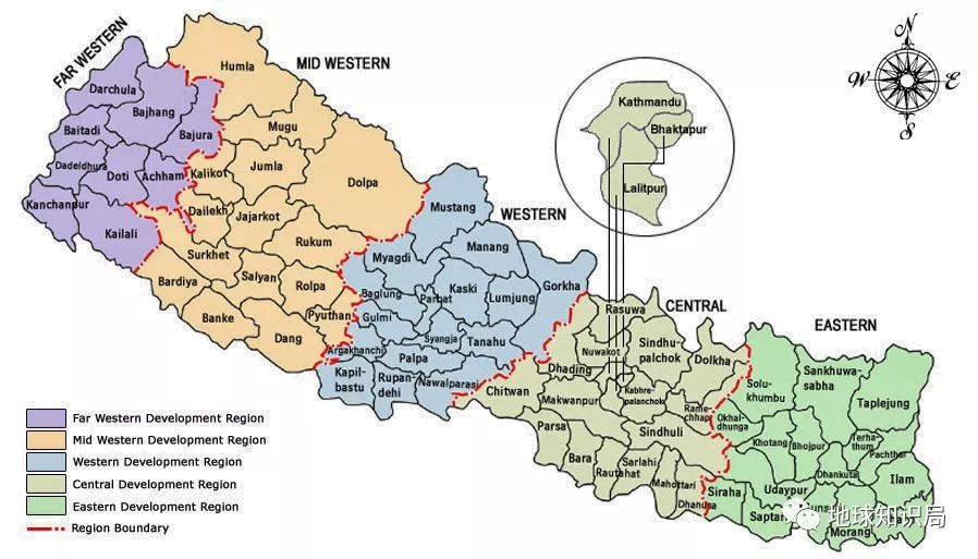 这条经线其实经过了尼泊尔,但是会把这个山地国家划分成非常不均等的两块。西边的一块非常狭小,东边一块则过于庞大。尼泊尔这样的小国,实在是没必要学美俄澳加这些巨无霸搞国内分区,于是决定把基准经线选在首都加德满都东边100公里的一座山上。这里的经度是东经86°左右,并不是7.5的倍数,只能向后推半格,变成了东5:45区。