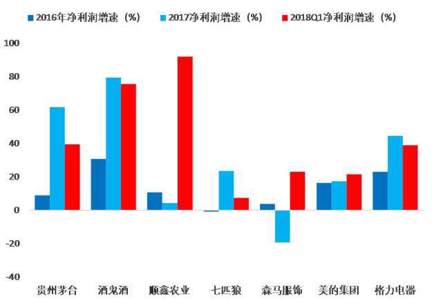 我们在消费品上市公司中,挑选出一些具有代表性的白酒、服装、家电企业,对比近几年的利润情况,可以发现一线向二线传导的特征很明显,这也就不难理解为何这些大众消费品股票今年的表现相对亮眼了。