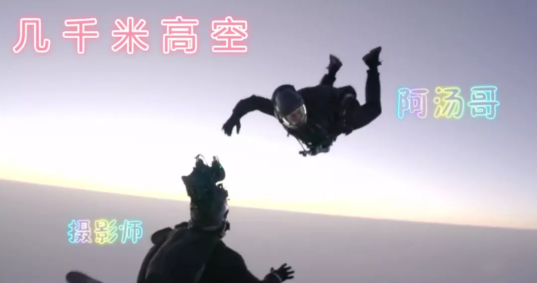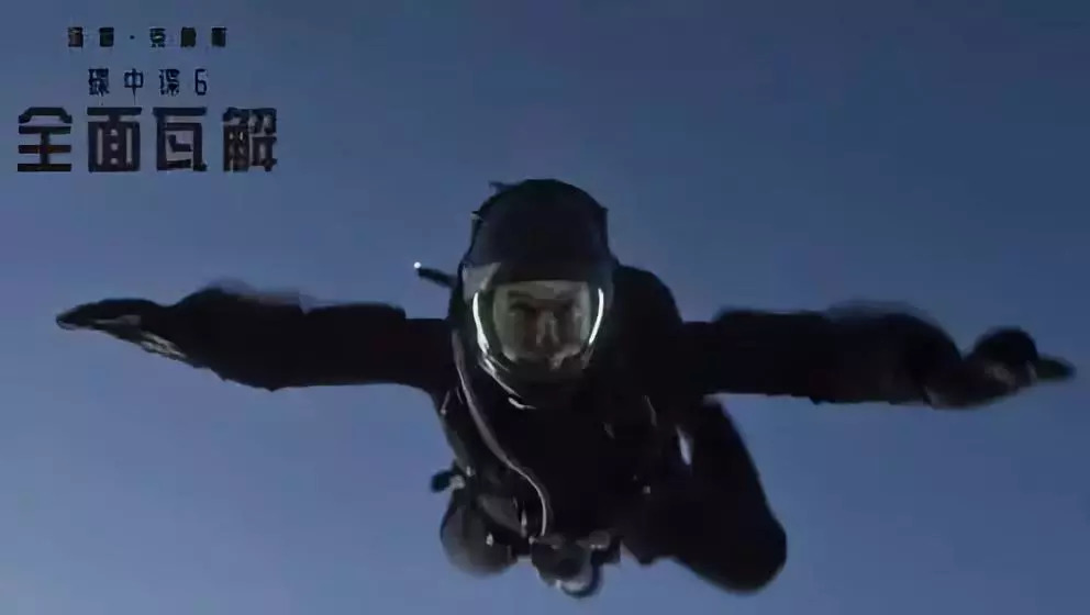 以第六部的高空跳伞为例,观众看到的画面是酱婶儿的——