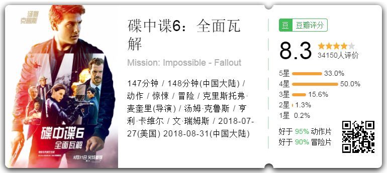 首映日砍下近2亿票房,观影人次490万;口碑爆棚,被誉为「系列最佳」、「年度最佳」……随着周末到来,《碟中谍6》必将掀起刷屏狂潮,近半个月无片可看的禁咒终于破了。