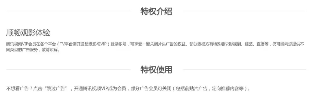 在腾讯视频的VIP条款中,清楚标明了会员享有“尊享广告特权”: