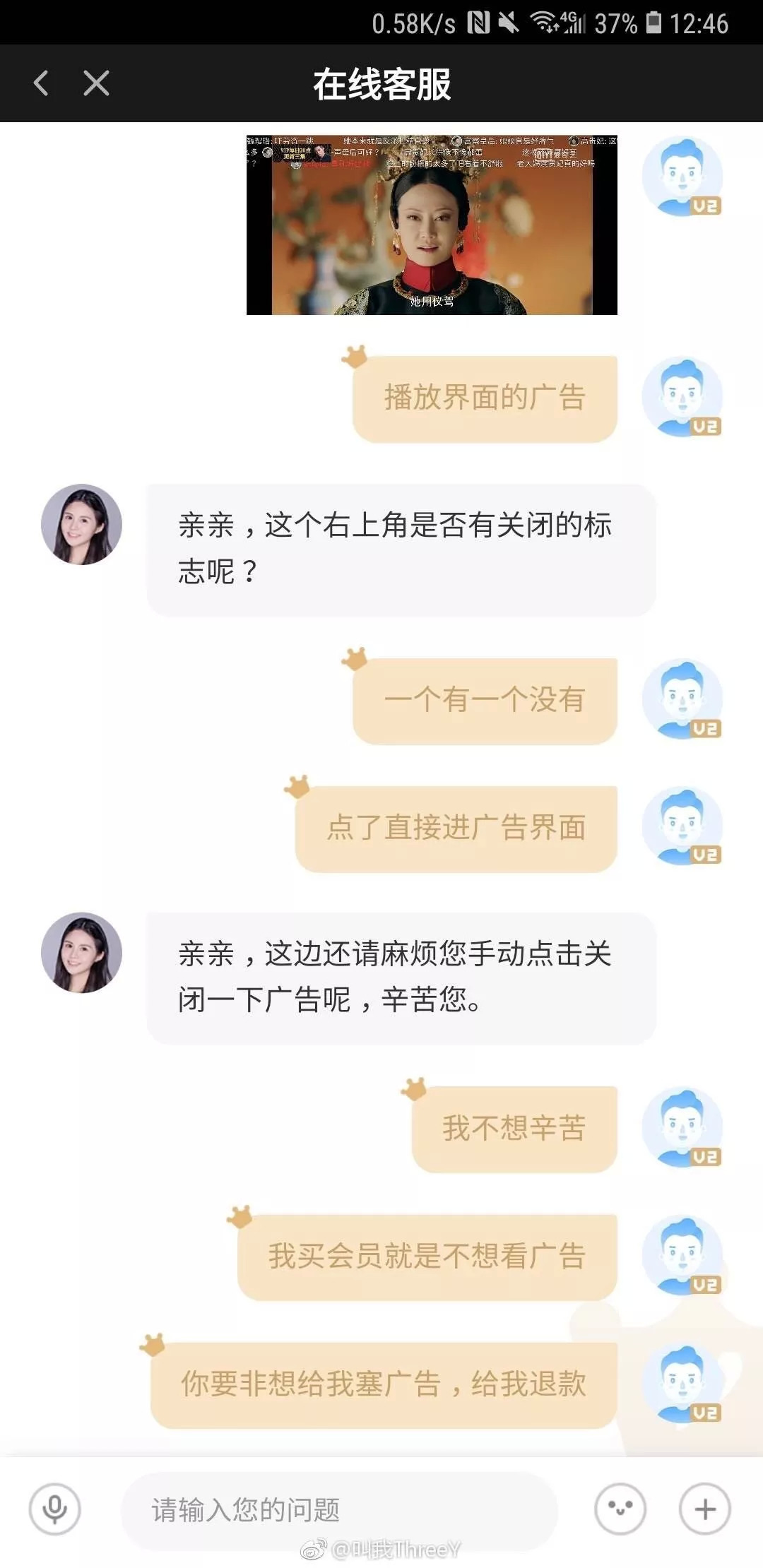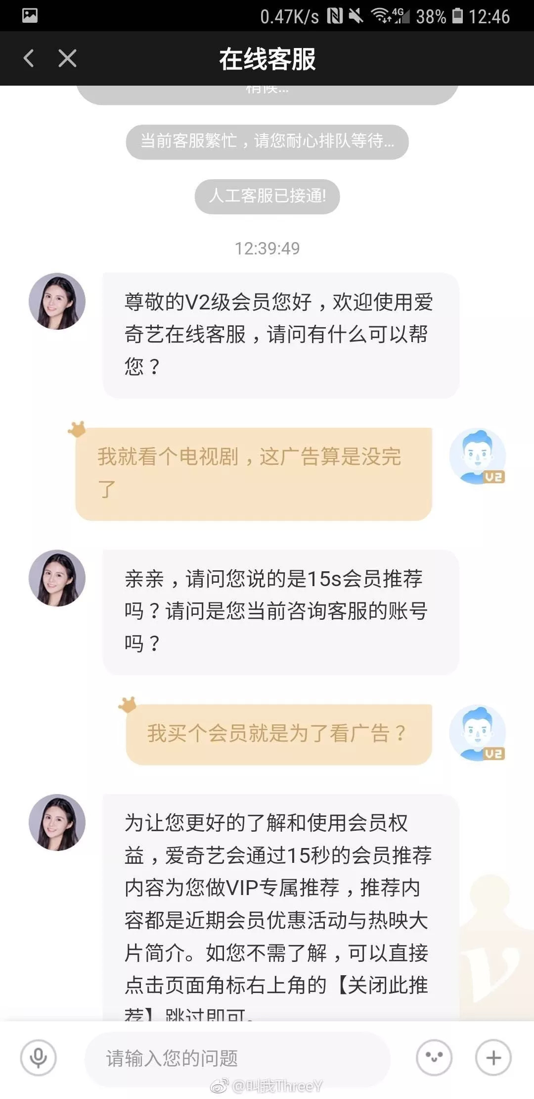 更难以忍受的是,还有一些是“会员专属广告”,《延禧攻略》播放过程中就有15秒的爱奇艺广告,为VIP推荐影片。