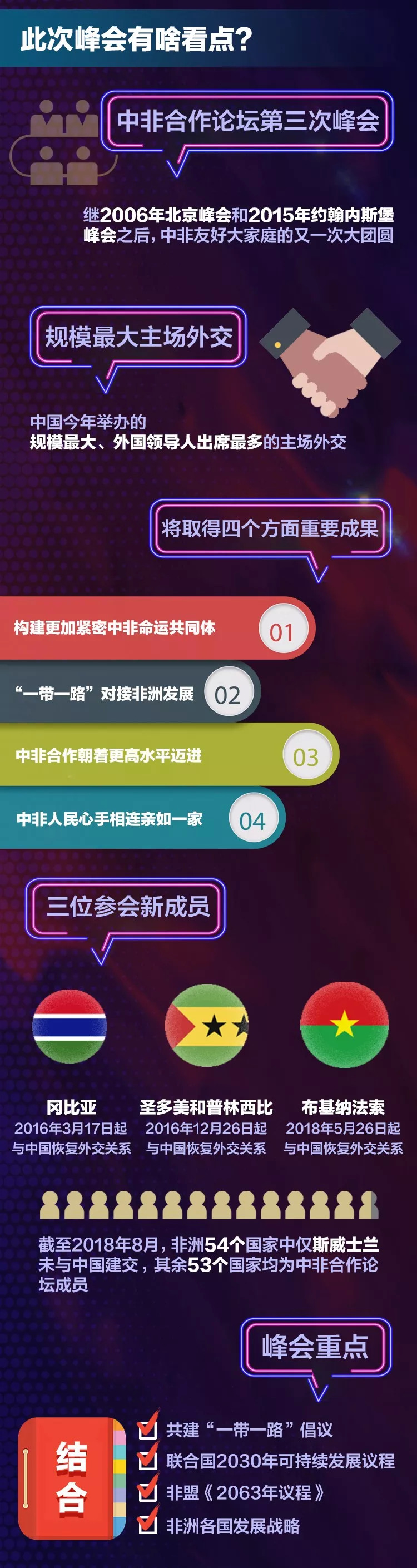 2018年中非合作论坛北京峰会将于9月3日至4日举行。国家主席习近平将主持峰会。峰会有啥看点,带你一图读懂。