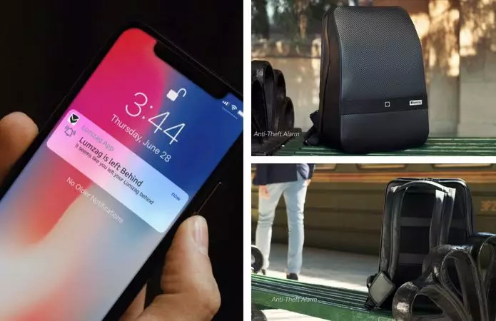 通过 LUMZAG 特殊贴纸,标记所需物品并通过 APP 设置,包内传感器感应到物品清单不全时,即会提醒,即时发现遗落或丢失。